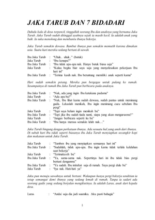 Bersamaan dengan itu juga para. Pada jaman dahulu kala hiduplah seorang pemuda yang bernama Jaka Tarub. Suatu hari mbok Randa sedang sakit dan badannya lemas rupanya umur mbok Randha hanya sampai hari itu.